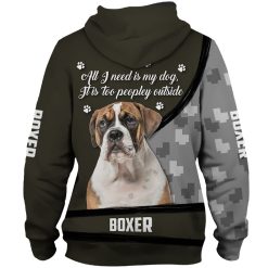 Boxer All I Need Is My Dog It’s Too Peopley Outside 3D Hoodie, Shirts, Jacket S-6XL
